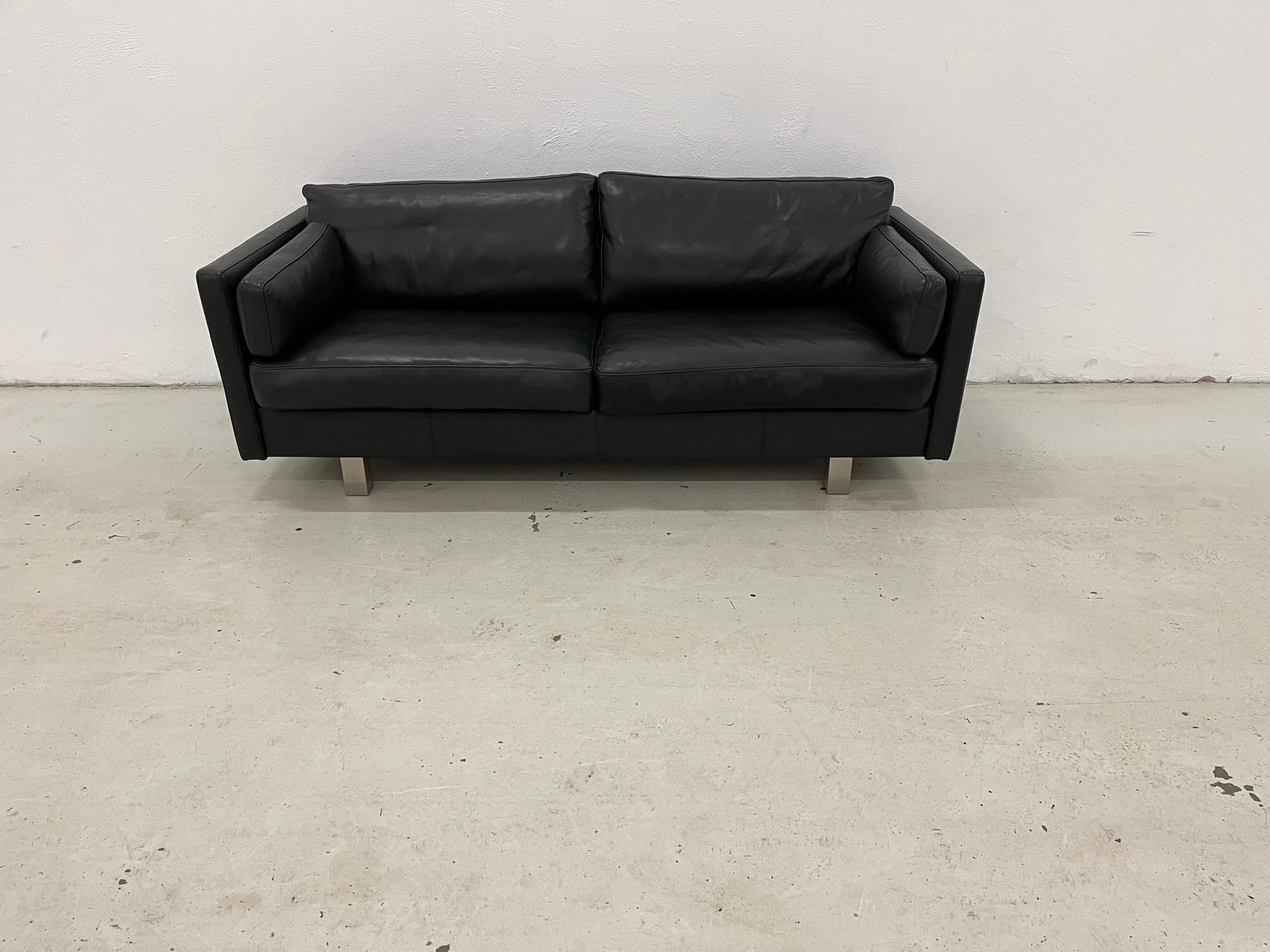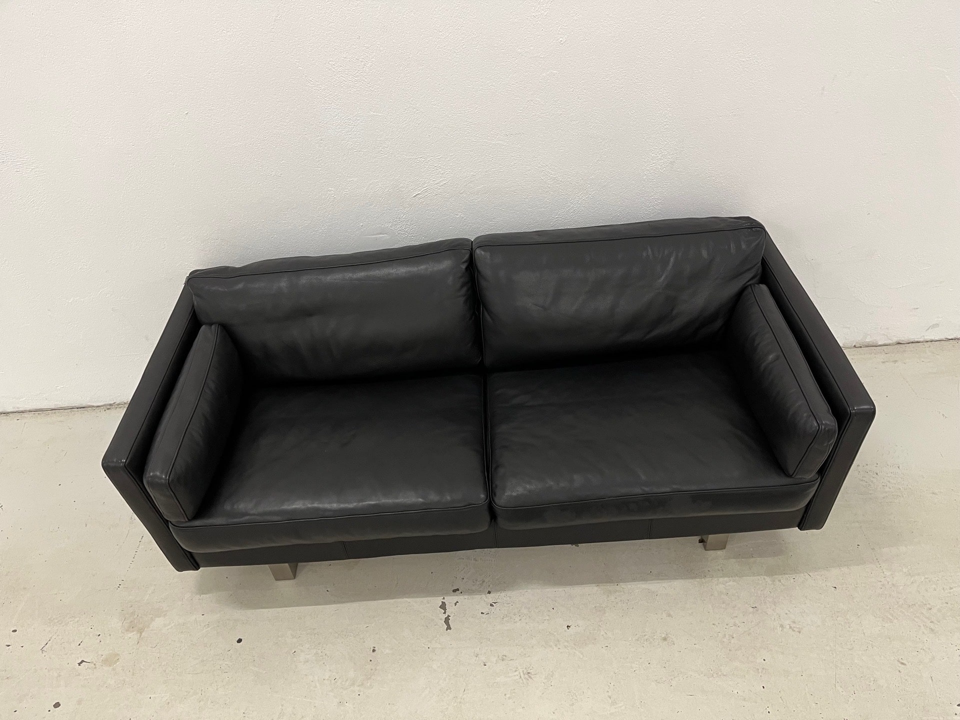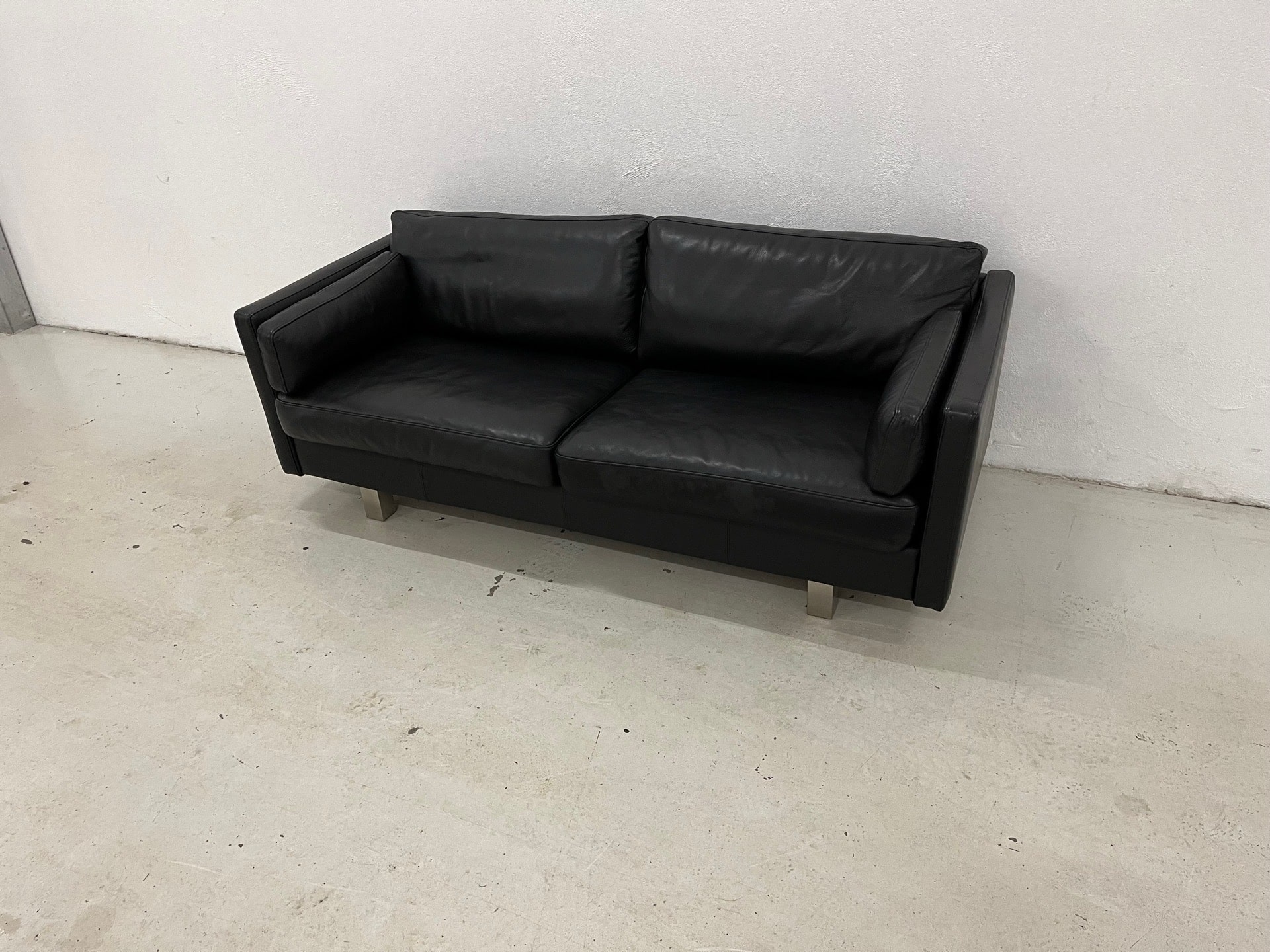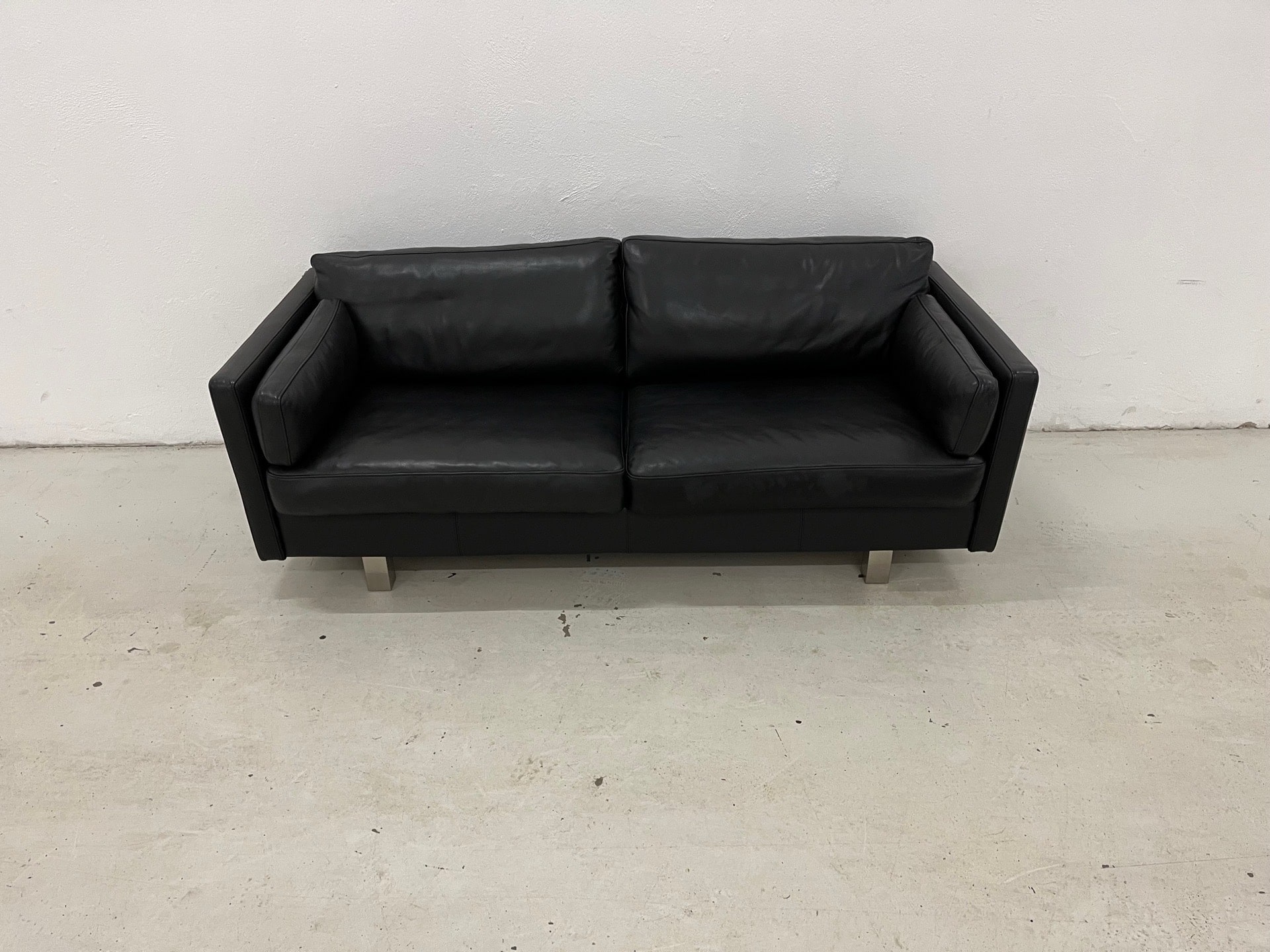 Arkitekt designet Skalma Bonn 2,5 pers. Sofa i sort okselæder og med ben i børstet stål. Nypris 21.999,-