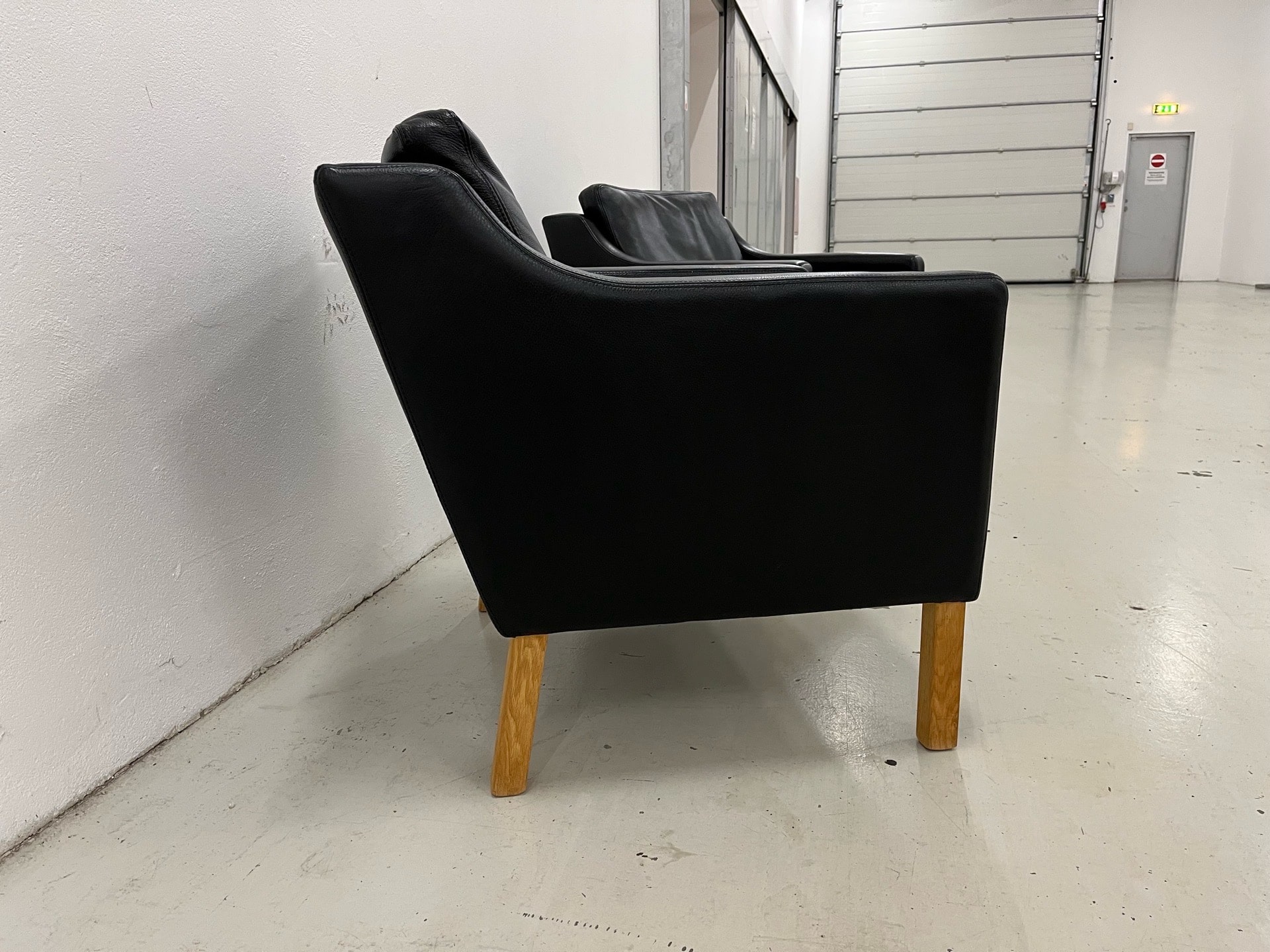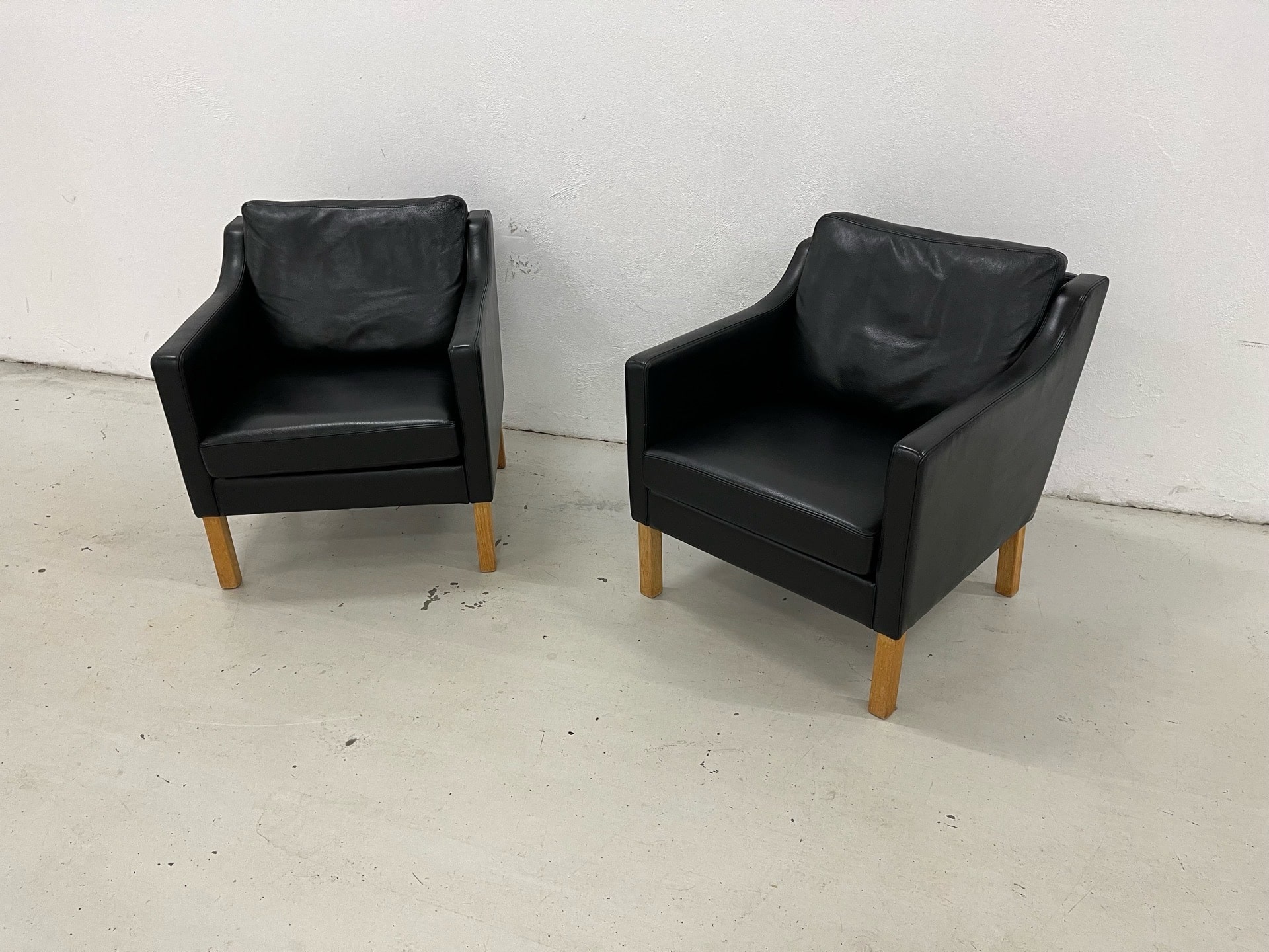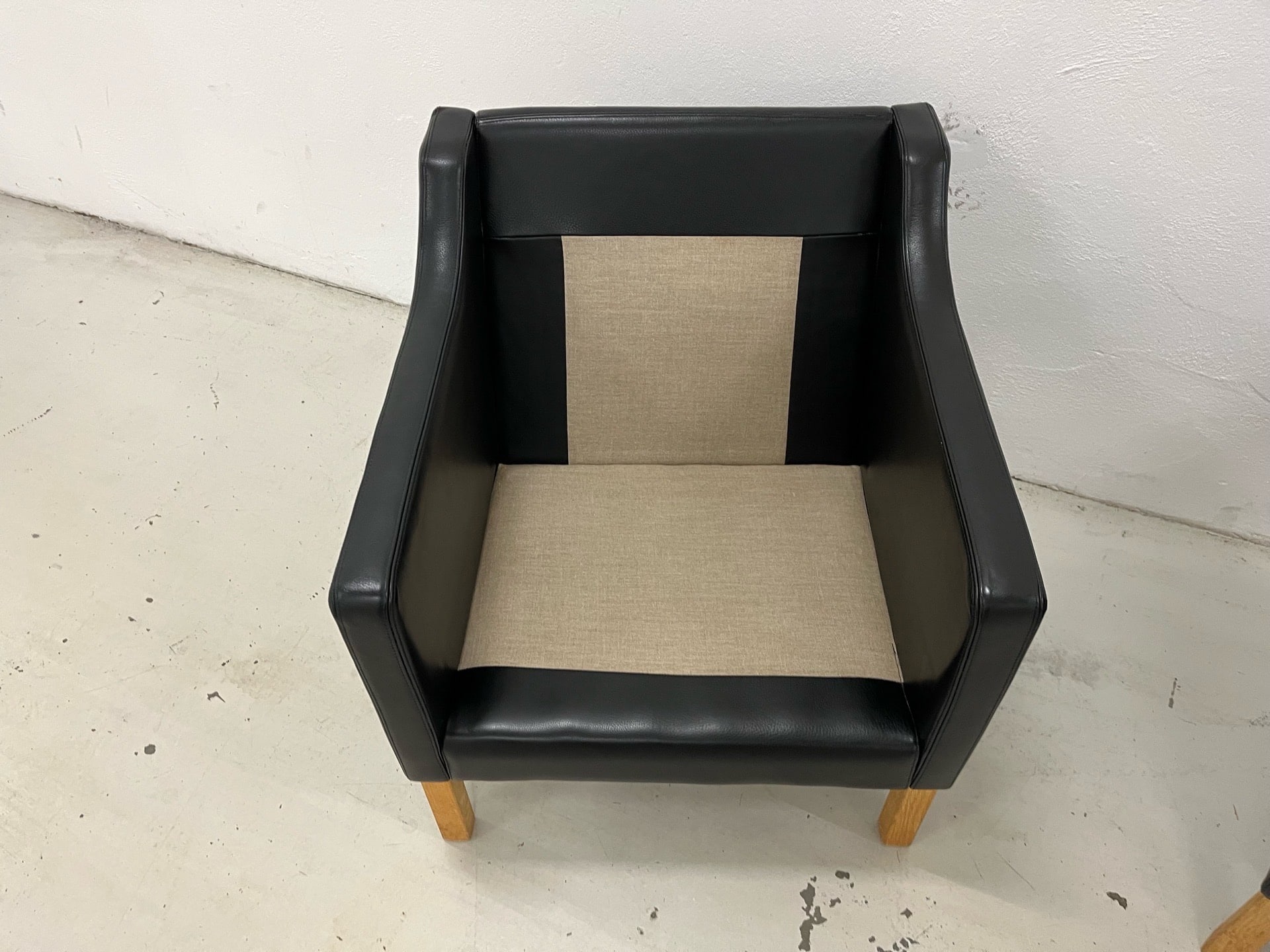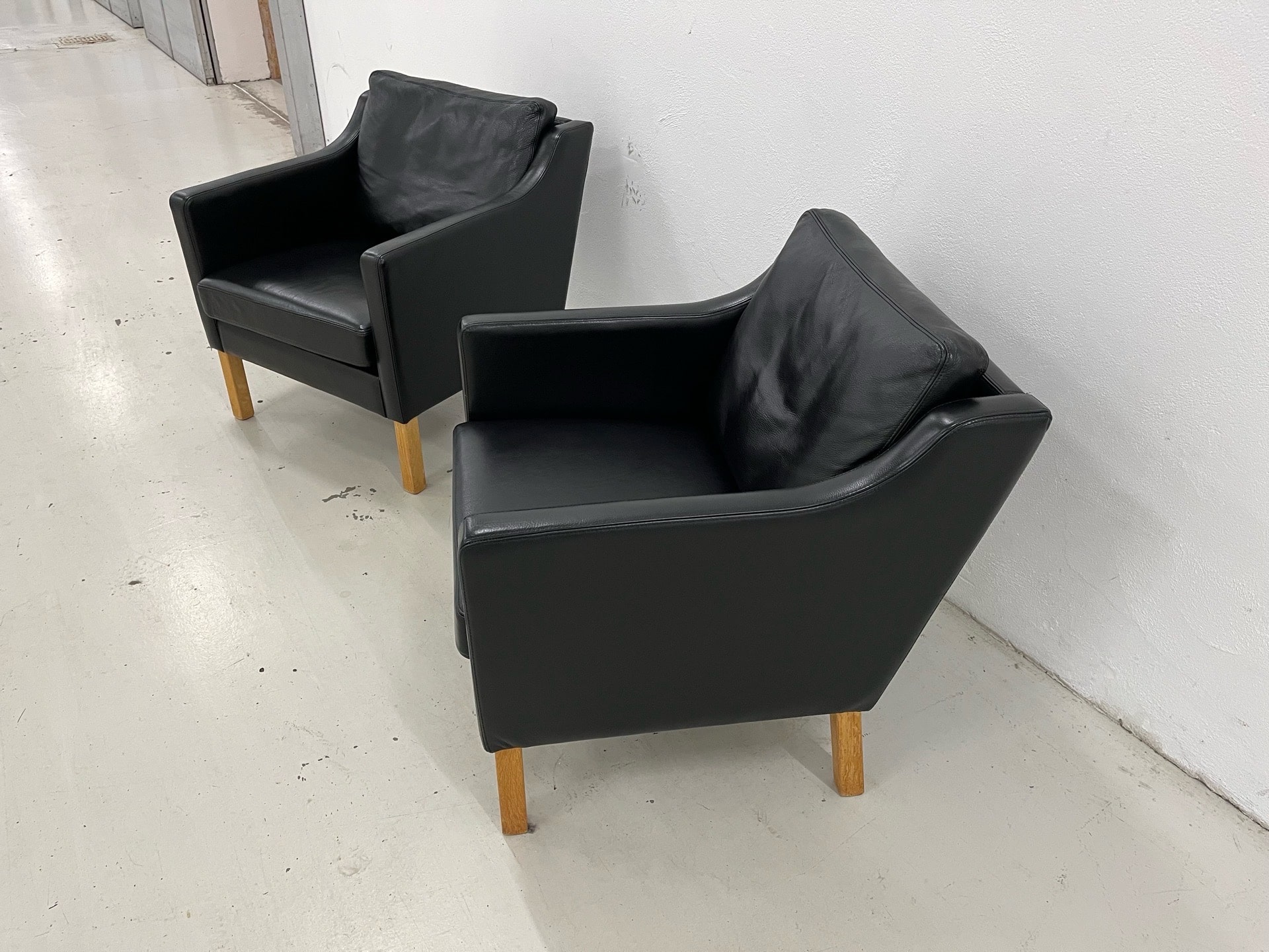 Nielaus lounge stole mærke Jeki special designet i sort semi anilin læder Living 5377 og med ben i olieret Eg. Nypris 40.000,-